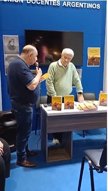 Miembros de la comisión directiva lo presentaron y leyeron poesías su libro. Alfonso Sanchez, en medio de la presentación se definió como no escritor, luego, con la historia y el anecdotario a cuestas que incluyó una reseña de traiciones, desertores, cautivas y héroes anónimos, dio una charla entusiasta que atrapó a los oyentes, entre ellos alumnos que visitaban la feria y quedaron atrapados, compañeros, público que se acercaba a oir sus palabras.