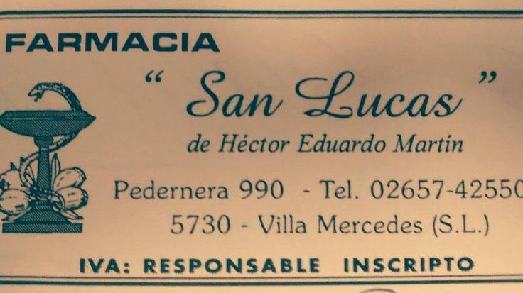 FARMACIA SAN LUCAS. Pedernera 990. Tel: 02657425506. Descuento de 15 % sin y 10 % en Perfumería